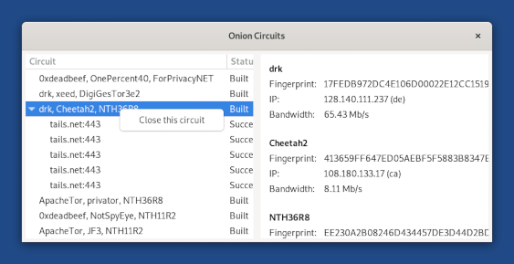 Connecting to Tor is only part of the story. At times, Tails users may find themselves on slow Tor circuits. And worse, unable to troubleshoot issues. So, we've made it easier to close pesky Tor circuits that we can sometimes land on.